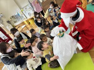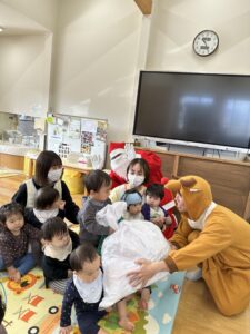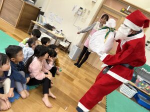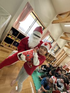 たんぽぽ組さんは、サンタさんからひとりずつプレゼントをもらいました。