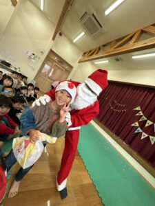 そして、リンリンリン鈴の音とともに、トナカイさんとサンタさんの登場に、ホールは大盛り上がり。プレゼントをもらい満面の笑顔の子ども達の姿がとても印象的でしたよ。