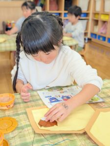 色の違う画用紙を重ねて絵馬の土台のできあがり~!