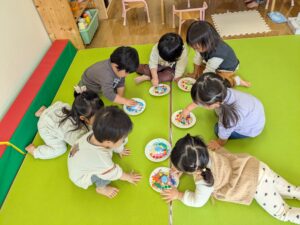 糊を見て不思議そうにしていましたが、みんな人差し指を使って上手に塗ることができていました👏