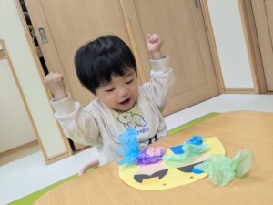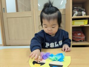 春の訪れを楽しみに待っている子どもたちです!もうすぐ桃の節句なのでもも組さんもお雛様作りに挑戦しました(*´ω`*)花紙を丸めて着物作りをしてペタッと貼りつけて目や口の小さなシールも貼ってみました(*´▽`*)みんな興味を持って取り組む姿が見られましたよ!すごい!!!