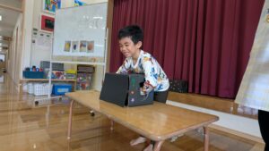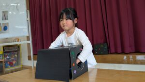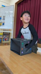 続いて、箱の中身はなんだろな!?のゲームコーナー☺️大きいたんぽぽ組さんみんな挑戦します。ドキドキ❤
