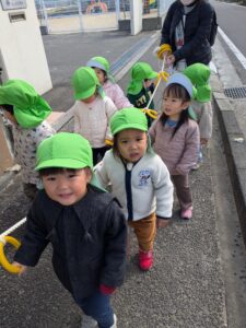 誘導ロープを持って園周辺にお散歩♬上手に歩いて行きます!
