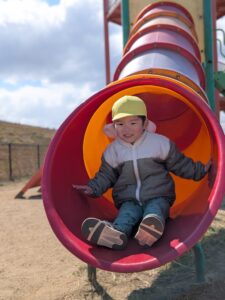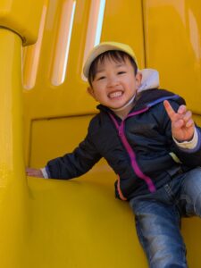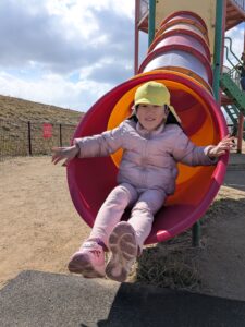 保育園にはない高い滑り台からは