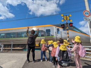 「あ!やったーー!でんしゃくるーー!」